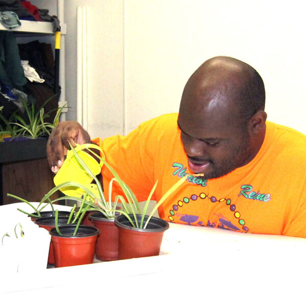 Many of our clients use the skills they learn to create beautiful, meaningful work. Through our microenterprise programs, they grow and sell plants, hand-pour candles and soaps, craft blankets, and more. These programs provide a real source of income, valuable skill-building opportunities, and a deep sense of ownership and pride.